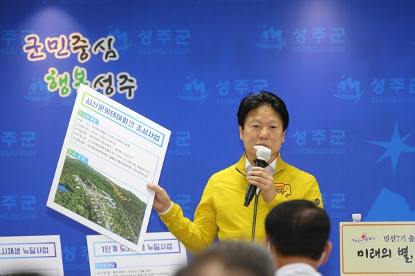 민선7기 취임 2주년을 맞이한 이병환 성주군수는“군수의 크기는 군민이 결정하는 것이다. 군민의 눈높이에서 군민과 소통하여 경북 서부권의 중심으로 성주를 만들고 옛 고려ㆍ조선시대의 큰 고을의 위상을 되살려 행복성주를 만드는게 제가 바라는 성주이며 그 꿈을 향해 맡은바 소명을 다하겠다”고 당당한 포부를 밝혔다.