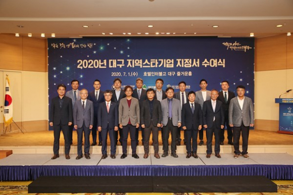 대구시와 대구테크노파크는 7월 1일 오후 3시 대구 인터불고호텔에서 중소벤처기업부 ‘2020년 대구 지역스타기업’에 신규로 선정된 15개사의 지정서 수여식을 개최했다.