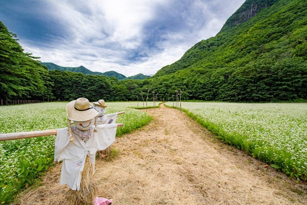 알봉 둘레길 입구 드넓은 들판에 17,400㎡ 규모로 조성된 메밀꽃밭에는 솟대, 허수아비, 피크닉 테이블 등도 설치하여, 보는 즐거움을 더하고, 안락하게 쉴 수 있는 공간도 마련하였다.