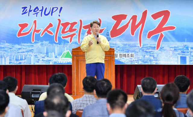 앞서 지난 1일 취임 후 이날 조회에 참석한 홍의락 경제부시장은 “시민들이 제가 시장님 모시고 이렇게 협치하는 것을 보고 위로를 받으시고 나름대로 희망을 가져 줬으면 좋겠다. 특히 경제인들도 다시 힘을 모아 대구 경제를 살려 보자 이렇게 용기를 내주시길 바란다. 무엇보다도 우리 대구가 훼손된 자존심과 자부심을 다시 한 번 드높이고 회복하는 계기가 됐으면 좋겠다”며 취임 인사를 전했다.
