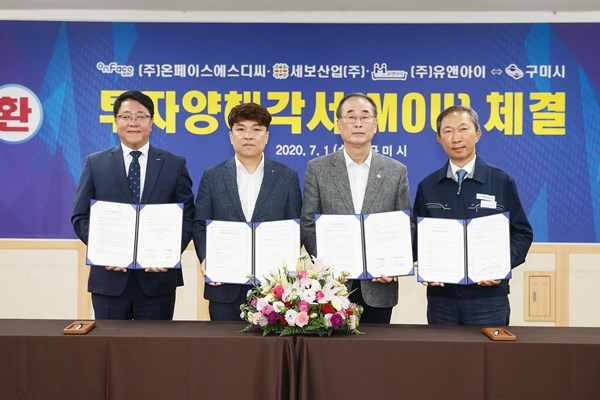 구미시(시장 장세용)는 지난 7월 1일 민선7기 3년차 시작을 투자기업 3개사와 6,690억 투자양해각서를 체결하여 구미 경제에 활력을 불어넣는 힘찬 출발을 알린다.