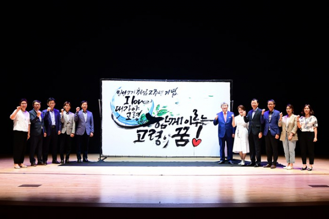 특히 누구나 살고 싶은 대한민국 대표 행복도시 아름다운 고령을 만들기 위한 군민 캠페인인 “I LOVE 대가야 고령”을 실행하는 원년이자 코로나를 극복하고 한 단계 더 앞으로 나가자는 의미로 “I LOVE 대가야 고령, 함께 이루는 고령의 꿈!” 이라는 캘리그라피 퍼포먼스를 진행하였다.