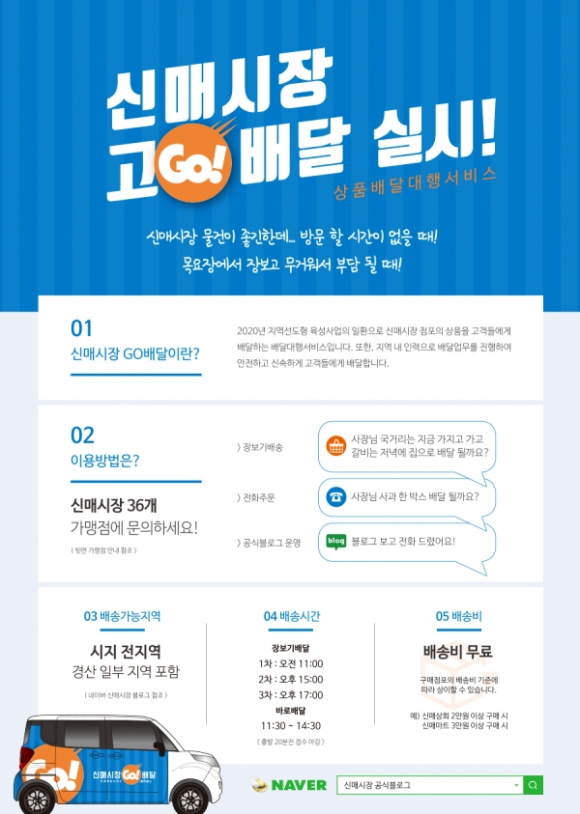 | ↑↑ 시장에서 구매한 상품을 집으로 배달하는 상품배달대행서비스, 신매시장 'GO배달' 홍보물 |