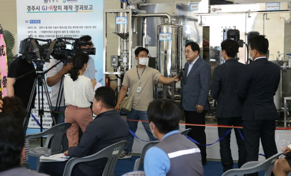 | ↑↑ gj-r 장치 해외수출1호 기념식_주낙영 경주시장 언론사 인터뷰 |