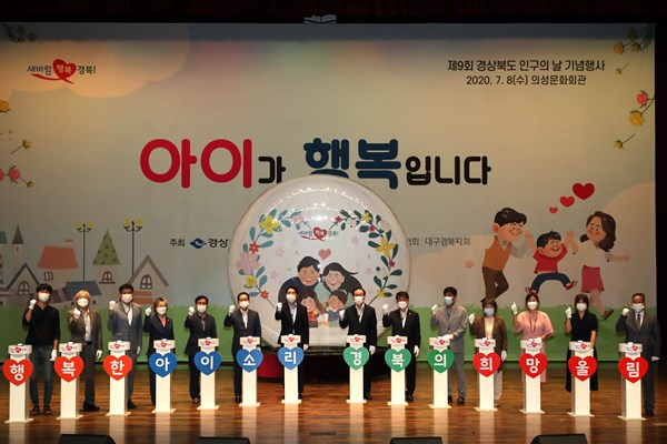 경상북도는 의성군, 인구보건복지협회 대구경북지회와 함께 8일 의성문화회관에서 경상북도 경제부지사, 의성군수, 도의원, 군의원, 인구정책위원회 위원, 사회연대회의 위원 등 100명이 참석한 가운데 ‘2020년 제9회 경상북도 인구의 날 기념행사’를 개최했다.