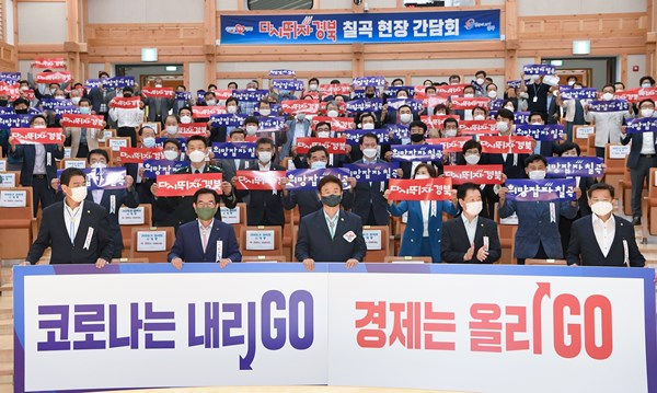 이철우 경상북도지사는 7월 8일 칠곡군 향사아트센터에서 백선기 칠곡군수, 조현석 (사)경북관광진흥원 이사장, 차순도 메디시티대구협의회장, 지역 기관․사회단체장, 청년CEO, 군민 등 150여명이 참여한 가운데 ‘다시 뛰자 경북’ 현장 간담회를 열었다.