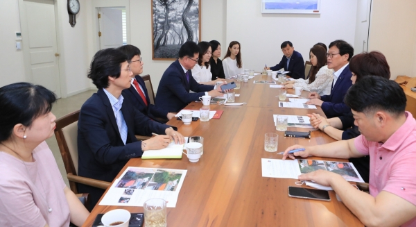 | ↑↑ 수성구 중학교 운영위원협의회 신규 임원진들이 김대권 수성구청장과 안전한 등하굣길과 관련하여 논의를 가졌다. |