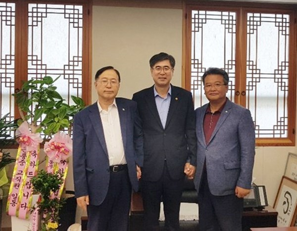 그리고 후반기 부의장으로 당선된 김희수 · 도기욱 부의장도 차례로 방문하여 축하 인사말을 건냈다.