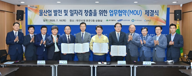대구시는 권영진 대구시장, 최성안 삼성엔지니어링 대표이사 사장, 장준영 한국환경공단 이사장, 최인종 국가물산업클러스터 입주기업협의회 회장이 참석한 가운데 물산업 발전 및 일자리 창출을 위한 물산업 협력 4자 업무협약을 지난 7월 16일 오후 2시, 대구시청 2층 상황실에서 개최했다.