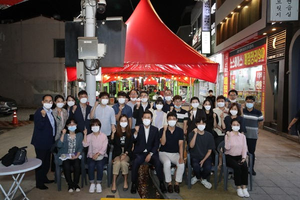 이강덕 시장은 직원들과 함께 포항사랑상품권을 사용하여 실개천 거리에 비치된 야외테이블에 앉아 야시장에서 판매하는 다양한 먹거리를 즐기며 코로나19 사태로 어려움을 겪는 소상공인과 전통시장 살리기에 앞장선 직원들의 노력과 성과를 공유하고 응원과 격려의 메시지를 전달하였으며, 직원들과 소소한 일상 등에 대해 편하게 대화하며 소통하는 시간을 가졌다.