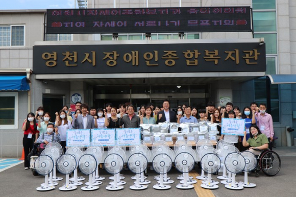 올해 후원위원회는 제1차 정기회의를 통해 ㈜오방색 채영숙 대표, 효창산업주식회사 박효정 대표, 영천스타라이온스클럽 전영원 회장을 신규위원으로 위촉하는 한편, 코로나19 장기화와 함께 역대급 무더위가 예고됨에 따라 박찬용 위원(LG전자 영천점 부사장), 오세창 위원(세찬 대표)의 후원으로 지역 내 저소득·취약 장애인 30가구에 선풍기와 보양식 전달을 결정해 7월 16일 물품을 전달했다.
