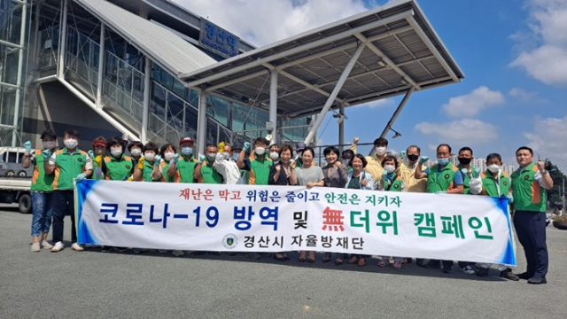 경산시(시장 최영조)에서 활동하는 자율방재단(단장 신재현)은 7월 16일 방재단원 40여명과 경산시의회 박미옥 부의장, 엄정애 운영위원장, 손병숙 산업건설위원장 등이 참여한 가운데 경산시의 관문인 경산역에서 자발적인 방역활동을 실시하고 지역주민들을 대상으로 리플릿・부채 등을 활용한 폭염시 행동요령을 홍보하는 캠페인을 전개했다.