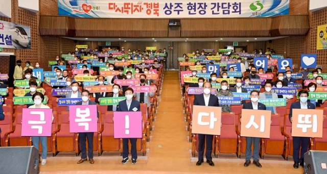 이철우 도지사는 7월 16일 상주시 문화회관에서 강영석 상주시장, ‘다시 뛰자 경북’ 범도민추진위원, 상주청년정책위원, 청년CEO 및 기관‧사회단체장 등 150여명이 참여한 가운데 ‘다시 뛰자 경북’ 상주 현장간담회를 열었다.