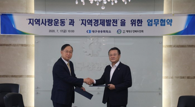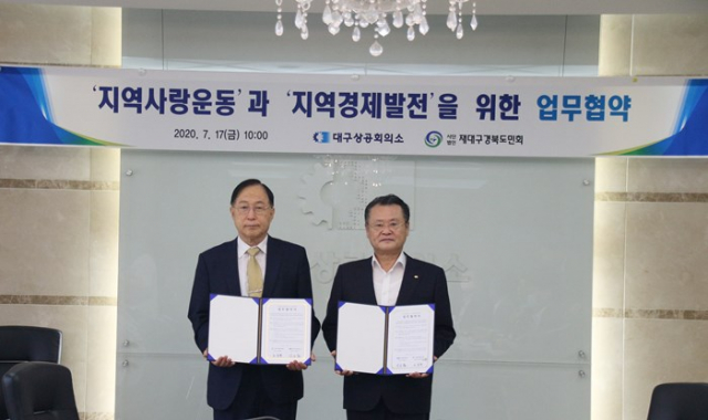 (사)재대구경북도민회(회장 조동희)는 대구상공회의소(회장 이재하)와 7월 17일 10시 대구상공회의소 3층 회의실에서 지역사랑운동과 지역경제발전을 위한 업무협약을 체결했다.