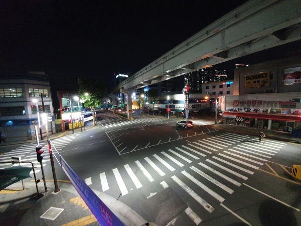 | ↑↑교차로 및 횡단보도 주변에 집중조명시설인 LE투광기 설치사진(달성공원네거리) |