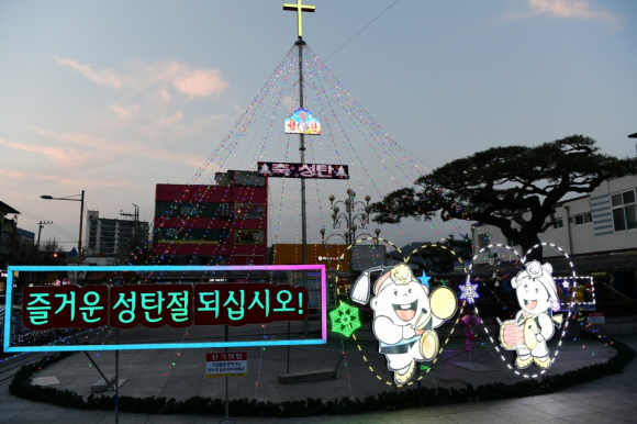 다가오는 성탄절을 맞이하여 추운 겨울밤의 김천을 환히 비출 성탄트리 점등식이 지난 25일 김천역 앞에서 성대하게 개최됐다.