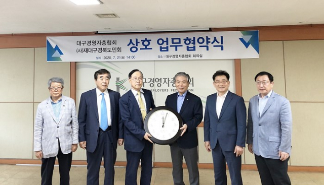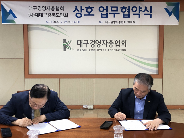 (사)재대구경북도민회(회장 조동희, 대구경총 부회장)는 대구경영자총협회(회장 김인남)와 7월 21일 14시 대구경영자총협회 8층 회의실에서 업무협약을 체결했다.
