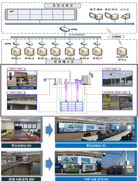 사업내용은 수문 전동화와 수위계, CCTV, 통신설비 설치 등 내년까지 총 512억원을 투입하여 수문 개폐 원격시스템을 구축하는 사업이다.