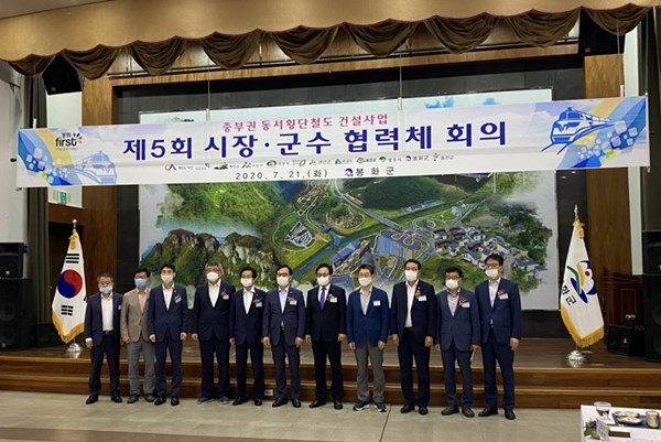봉화군은 7월 21일에 제5회「중부권 동서 횡단철도 건설사업」 시장‧군수 협력체 회의를 봉화군청 대회의실에서 개최했다.