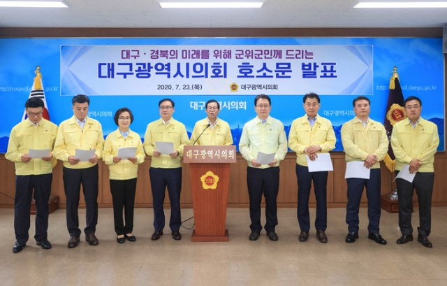 대구시의회(의장 장상수)는 국방부가 못 박은 통합신공항의 공동후보지 유치신청 최종시한(7월 31일)을 앞두고 사업의 무산을 막기 위해 군위군민께 보내는 호소문을 발표했다.