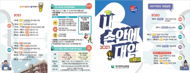 한편 이 리플릿에서는 대구시교육청에서 8월에 개최하는 제11회 대구 진로진학박람회 및 2021학년도 대입 수시 전형 대비 상담에 참여할 수 있도록 관련 정보도 안내하고 있다.