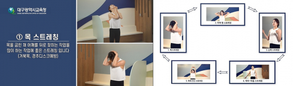 대구시교육청(교육감 강은희)은 각급학교 및 기관 근로자의 근골격계질환 예방을 위해 작업현장에서 쉽게 따라할 수 있는 스트레칭 동영상을 제작해 보급했다.