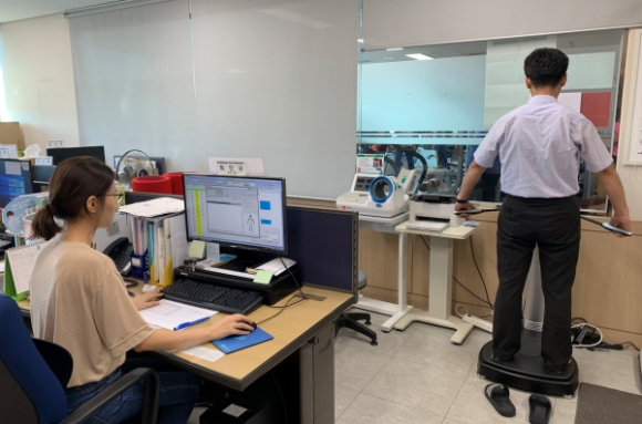 | ↑↑ ‘보건소 모바일 헬스케어 사업’의 하나로 인바디 측정을 하는 모습 |