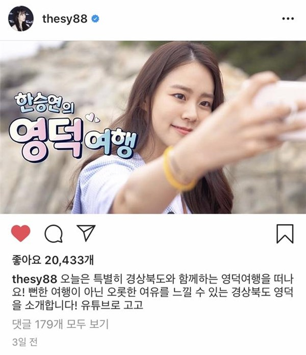 또한, 한류스타를 활용한 V-LOG영상 제작사업의 일환으로 일본에서의 높은 인지도뿐만 아니라 개인 SNS활동 역시 활발히 하고 있는 배우 한승연과 협업으로 영덕, 포항, 경주의 핫플레이스 소개 및 현장 방문소감을 생생하게 전달하는 여행 영상을 제작했으며, 공사 유튜브 채널 및 한승연의 개인 SNS(인스타 및 유튜브채널)에 지난 7월 21일 영덕 편 업로드를 시작으로 포항, 경주 순으로 경북의 아름다운 영상을 선보일 예정이다.
