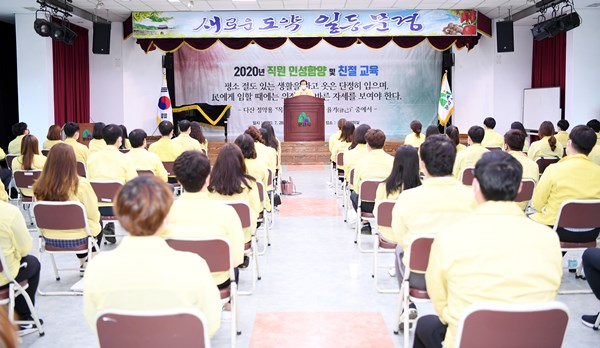 이번 교육은 직원 80명씩 3일간 총 3회 교육으로 진행되며, 양질의 시민 친절 서비스 제공과 조직 역량 강화를 목표로 직원들의 상호 협력적 태도 함양과 의사소통 문화를 개선하기 위해 마련됐다.