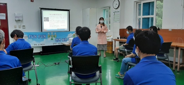 | ↑↑장애인 직업재활시설 5개소를 대상으로 안전사고 예방을 위한 펀펀(Fun Fun)! 장애예방교실을 운영한다. |