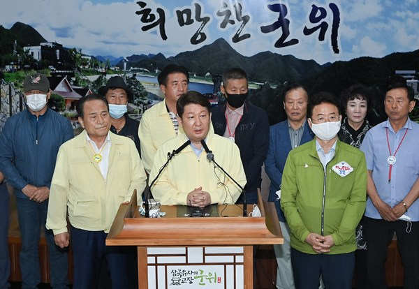 그동안 여러 가지 우여곡절도 있었고, 때로는 갈등도 있었고, 또 그 갈등을 봉합하기 위한 지혜와 힘을 모아 오셨습니다. 특별히 어려운 결단을 해주신 우리 김영만 군수님과 군민 여러분께 감사의 말씀을 드리겠습니다. 아울러 이미 미리 공동후보지에 유치 신청을 하고 군위가 유치신청을 하기를 애타게 기다리고 있는 의성군수님과 군민께도 감사의 말씀을 드리겠습니다. 대구와 경북을 아우르면서 정말 불철주야 애써주신 이철우 도지사님... 도지사님의 인내와 정치력이 없었다면 오늘이 없었을지도 모릅니다. 이철우 지사님과 경상북도 도민들께도 감사의 말씀을 드리겠습니다.