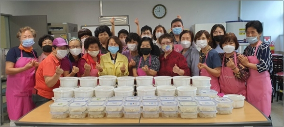평생학습관 밑반찬봉사단(회장 신귀연)은 매월 직접 조리한 밑반찬을 관내 소외계층에 전달하며, 따뜻한 지역 사랑을 수년째 실천하고 있는 봉사단으로, 이날 봉사단은 코로나19와 계속되는 장마로 더욱 따뜻한 이웃의 정이 그리운 무의탁장애인 및 독거노인, 생계곤란자 등 소외계층 40가구에 인삼, 대추, 황기, 찹쌀 등을 넣어 정성스럽게 끓인 닭백숙을 전달했다.