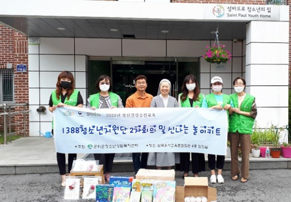 회의를 통해 올해 1388청소년 전화 홍보와 아웃리치 활동 협조를 구하고 청소년들이 먹을 간식 꾸러미를 포장하고 캘리그라피를 이용하여 벽걸이용 응원 액자를 만들었다. 청소년들이 좋아하는 보드게임과 함께 부계 성바오로 청소년의 집으로 찾아가 물품후원 하였다.
