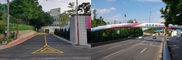 | ↑↑ 대덕문화전당 진출입로 ↑↑ 대덕문화육교 |