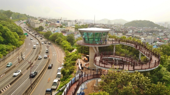 특히 장애인, 노인 등 보행 약자의 이동편의를 고려해 완만한 진입경사로를 설치했으며, 전망대는 60여 명이 동시에 입장 할 수 있는 115㎡ 규모로 앞산 바람길을 맞으며 여름철 폭염을 한 번에 날릴 수 있는 시민들의 쉼터로 각광받을 것으로 보인다.