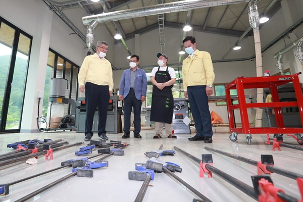 | ↑↑ 목재체험관 시설점검 중인 김학동 예천군수(왼쪽 첫번째) |