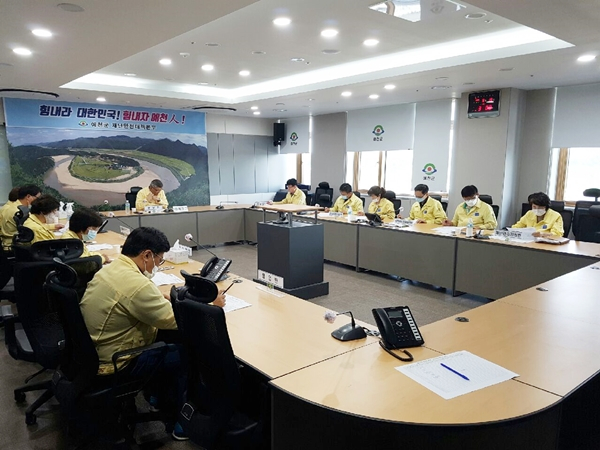 김학동 군수는 서울과 경기지역 코로나19 확산세가 지속됨에 따라 지난 8월 16일 오후 3시 재난상황실에서 코로나19 긴급방역 회의를 개최 했다.