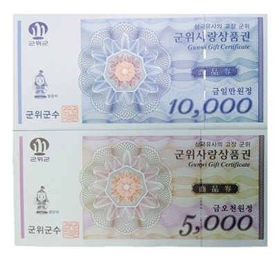 상품권 사용은 군위사랑상품권 가맹점 스티커가 붙어있는 모든 업소에서 사용 가능하고, 상품권 금액의 80%이상 사용시 현금으로 잔액을 돌려받을 수 있으며 상품권 유효기간은 발행일로부터 5년간이다.
