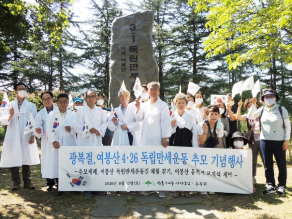 광복 75주년 광복절을 맞아 대구 동구 미대 여봉산(礪峰山) 4․26 독립만세운동 8인 애국지사 추모 기념행사가 지난해 지역민들의 뜻과 힘으로 건립한 ‘미대 여봉산 3․1독립만세운동 기념비’ 일원에서 열렸다.