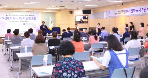 대구 수성구(구청장 김대권)가 주최하고 수성여성클럽이 주관한 ‘여성친화도시 3단계 발전 포럼(포스트 코로나시대 여성친화도시 발전방안)’이 지난 19일 수성구청 대강당에서 개최됐다.