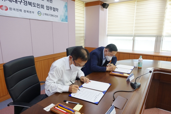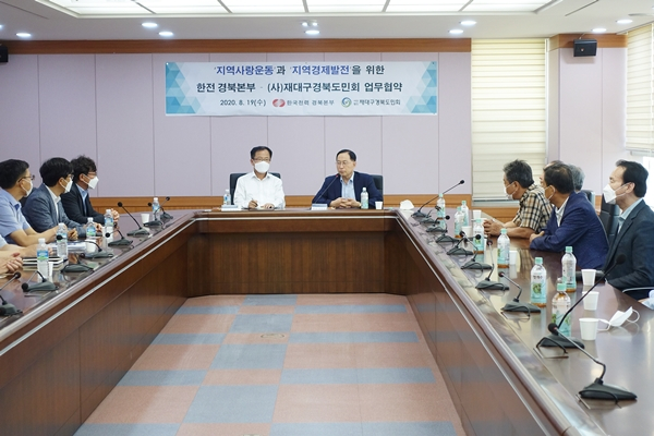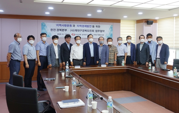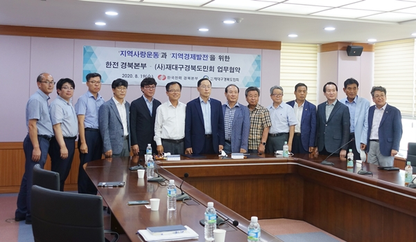 (사)재대구경북도민회(회장 조동희)는 한국전력공사경북본부(본부장 박정석)와 지난 8월 19일 오후4시 한국전력경북본부 2층 대회의실에서 지역사랑운동과 지역경제 발전을 위한 업무협약을 체결했다.