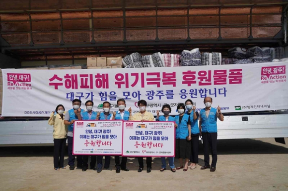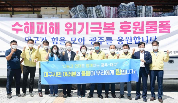 대구시는 최근 발생한 집중호우 피해로 어려움을 겪고 있는 광주시민을 위해 대구시민의 응원의 마음을 실은 5천만원 상당의 기부물품 전달 차량을 지난 8월 20일 광주로 보냈다.