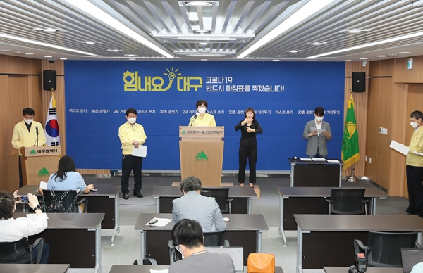 대구시교육청(교육감 강은희)은 정부의 전국 사회적 거리두기 2단계 격상에 따라 지난 8월 22일 긴급 대책회의를 열고, 학교 내 코로나19 재확산을 방지하고 학생 안전 확보를 위한 방안을 마련해 각급 학교에 안내했다. 이어 강은희 교육감은 8월 23일(일) 오전 11시 대구시 코로나19 대응 브리핑에 참석해 ‘밀집도 최소화를 위한 등교수업 방안’을 발표했다.