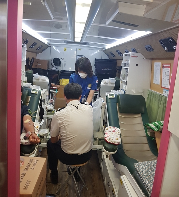 사랑의 생명 나눔 헌혈행사는 코로나19 감염 예방을 위해 버스 탑승 인원을 시간대별로 편성하고 헌혈자 간 거리두기, 대기 시간 최소화 등 방역 수칙을 철저히 준수한 상태에서 진행했다.