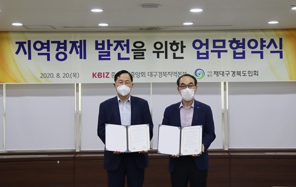 지난 8월 20일 중소기업중앙회 대구경북지역본부와 (사)재대구경북도민회(회장 조동희)가 체결한 ‘지역사랑운동 촉진 및 대구경북 지역경제 활성화를 위한 업무협약’도 지역경제 활성화를 지원하기 위한 노력의 일환입니다.