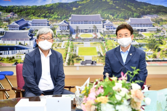 이날 장세호 위원장의 도청 방문은 지난 8월 2일 더불어민주당 경북도당 위원장으로 선출돼 2년간 경북도와 민주당 간 가교의 막중한 역할을 맡게 되면서 도와의 상생협력 의지를 다지고 코로나19 대응, 통합신공항 추진, 대구경북 행정통합 등 당면한 현안에 대한 협력방안을 모색하기 위해 이뤄졌다.