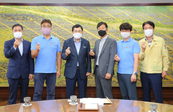 | ↑↑ 왼쪽에서 2번째 신상곤 울타리USA 대표, 3번째 주낙영 경주시장, 4번째 서종수 경주농식품수출협의회장, 5번째 임양원 울타리USA 한국지사장 |