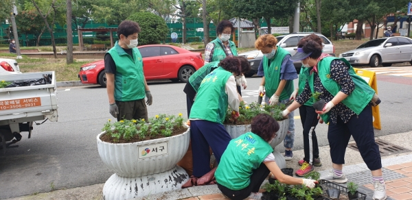 | ↑↑ 서구 내당4동 새마을단체 가을꽃 심기 봉사 |