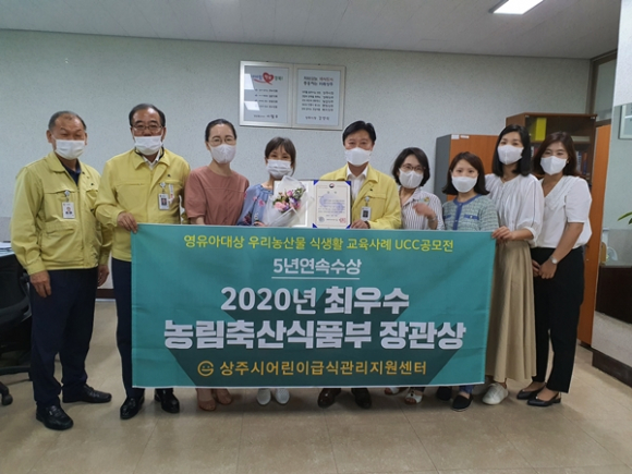 상주시어린이급시관리지원센터는 지난 8월 19일 대한영양사협회에서 개최한 우리농산물 유아교육사례 UCC 공모전에서 최우수 작품으로 선정되어 농림축산식품부 장관상을 수상하였다.