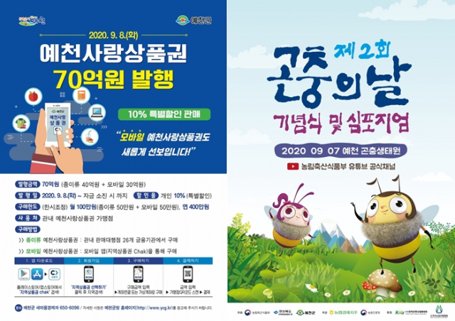 예천군(군수 김학동)은 9월 8일부터 코로나19 장기화로 침체된 지역경제를 회생시키기 위한 단초 마련과 소비 진작을 위해 예천사랑상품권 종이류 40억 원, 모바일 30억 원 총 70억 원을 발행한다.